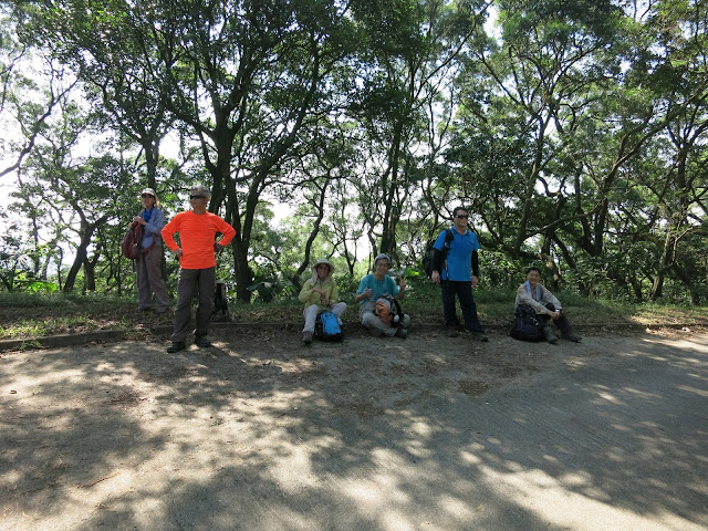 到達馬路時, 先讓隊友小休幾分鐘, 然後就起步向蓮花山林道進發。由於走馬路就更無難度, 大家快速前行, 由大欖林道轉往蓮花山林道, 路段也是頗長的, 走了四十分鐘才到達原定路線由白石橋上來的路口, 由於見到隊尾墮後太遠了, 於是就在這處原來路線的休息位置小休, 等候隊尾到來匯合。